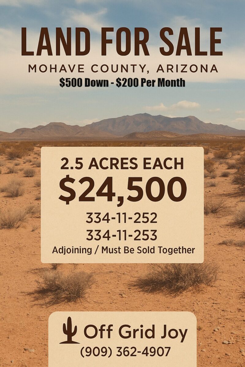 At OffGridJoy.com, we specialize in offering prime land for sale in the stunning Mojave Desert, just outside Kingman, AZ.